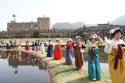 경기호연뉴스 김대엽 기자 | 청도군은 지난 30일 청도읍성에서 열린 '2024 청도읍성예술제와 제2회 대한민국 퓨전국악대전'이 1만 명의 관람객 속에서 성황리에 개최됐다고 밝혔다. 행사장에는 날이 풀리자, 봄나들이를 나온 가족, 연인, 친구 등 많은 방문객들이 전통의상, 전통악기, 다도체험 등 다채로운 전통 체험 프로그램을 즐기며 인산인해를 이뤘다. 청도군 주최, 청도읍성예술제 추진위원회(회장 손성찬) 주관으로 개최된 청도읍성예술제는 오전 기원제를 시작으로 화양읍 여성농악단의 길놀이, 온누리국악예술단을 비롯한 지역예술인의 축하공연으로 행사장의 활기를 돋웠다. 주 행사인 읍성밟기가 시작되자 한복을 곱게 차려입은 부녀회 회원들과 여성단체협의회 회원들로 구성된 긴 행렬이 머리에 돌을 이고 읍성 민속촌 앞에서 출발해 북문인 공북루(拱北樓)를 지나 태극문양의 연지 못을 돌기 시작했다. 연지 못에 비친 형형색색 한복차림의 행렬들은 봄꽃으로 만개한 청도읍성과 어우러져 장관을 이뤘다. 예술제의 마지막 공연 미스터트롯2 2위 ‘박지현’의 축하공연이 시작되자 행사장을 가득 메운 관람객들의 뜨거운 호응과 환호가 이어졌