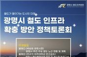 경기호연뉴스 민선기 기자 | 광명시는 미래 철도도시로 도약하기 위한 핵심 전략을 논의한다. 시는 오는 15일 오후 3시 시청 대회의실에서 ‘광명시 철도 인프라 확충방안 정책 토론회’를 개최한다. 이번 토론회는 신천–하안–신림선 추진 현황을 비롯해 광명시의 철도 접근성 진단, 철도 음영지역 개선 방향, KTX광명역의 미래 역할 등 광명시 철도 정책의 주요 과제를 종합적으로 점검하기 위해 마련했다. 토론회에서는 세 건의 주제 발제가 이어진다. 먼저 박승원 광명시장이 신천–하안–신림선 등 주요 사업의 추진 현황과 향후 계획을 설명하고, 이어 전교석 아주대 연구교수가 광명시 철도 음영지역 진단과 철도망 발전 구상을 제시한다. 마지막으로 나희승 전 코레일 사장은 유라시아 평화철도 구상 속에서 KTX광명역이 나아가야 할 미래적 역할을 발제한다. 발제 후에는 유정훈 대한교통학회장(아주대 교수)을 좌장으로, 각 분야 전문가가 참여하는 패널 토론과 질의응답이 이어진다. 시민들은 별도의 신청 없이 현장을 방문해 발제와 토론을 청취하고 질의할 수 있다. 시는 이번 토론회에서 제시된 전문가 의견