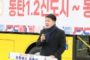 경기호연뉴스 민선기 기자 | 화성특례시의회는 26일 동탄 패밀리풀 공영주차장에서 열린 '동탄역 순환버스 개통식'에 참석해, 주민의 교통편의 증진을 위한 새로운 출발을 시민들과 함께 축하했다. 이날 개통식에는 배정수 의장을 비롯해 김영수 의회운영위원장, 김종복 문화복지위원장, 이은진·이해남 의원이 참석했고 시 관계자 및 주민 등이 함께했다. 동탄역 순환버스는 동탄 지역 내 주요 생활권과 동탄역을 연결하는 노선으로, 주민들의 동탄역 접근성을 개선하고 일상 이동의 불편을 해소하기 위해 마련됐다. 특히 이번 개통은 주민들의 지속적인 건의와 현장 목소리를 반영한 결과로, 지역 맞춤형 교통체계 개편의 출발점이라는 점에서 의미를 더하고 있다. 배정수 의장은 “동탄 주민이 보다 편리하게 이용할 수 있는 동탄역 순환버스 개통식을 맞이하게 되어 매우 뜻깊게 생각한다”며“빠르게 성장한 동탄이 화성특례시 중심 도시로 자리매김한 만큼, 이에 걸맞은 촘촘한 대중교통 체계가 무엇보다 중요하다”고 밝혔다. 배 의장은 이어 “이번 사업은 단순히 버스 한 노선을 늘리는 것이 아니라, 주민의 일상 이동을 바꾸고 삶의 질을 높이는 변