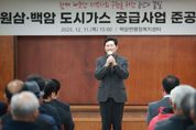 경기호연뉴스 민선기 기자 | 용인특례시는 11일 처인구 원삼·백암면 주요 지역에 도시가스 공급이 이뤄짐에 따라 용인 전 지역에 도시가스 공급 기반을 마련했다고 밝혔다. 시는 시비 100억원, ㈜삼천리 100억원 등 총사업비 226억원을 들여 올해 12월까지 원삼·백암면 주요 지역에 도시가스를 공급하는 사업을 추진했다. 시는 원삼면 좌항·사암·두창리를 시작으로 백암면 근창리까지 약 1700세대, 도시가스 공급관 50.5km를 연장했다. 그동안 원삼·백암면 주민들은 도시가스가 연결되지 않아 LPG를 사용하는 등 일상생활에서 불편을 겪어 왔다. 시는 추가적으로 2029년까지 백암지역 930세대에 도시가스 보급을 확대할 계획이다. 이날 백암면행정복지센터에서 열린 ‘원삼·백암 도시가스 공급사업 준공식’에는 이상일 시장, 김정태 ㈜삼천리 전무이사, 원삼·백암면 이장협의회와 지역 주민 등 100여 명이 참석했다. 준공식에서는 도시가스 공급사업 경과보고와 유공자 포상 등이 이뤄졌다. 도시가스 사업에 적극 협력한 공로로 김영열 전 사암6리 이장과 정의석 백암1리 이장이 시장 표