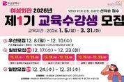 경기호연뉴스 민선기 기자 | 부산시 여성문화회관은 오는 내일(8일)부터 '2026년 제1기 문화교실' 수강생을 모집한다고 밝혔다. '여성문화회관 문화교실'은 우수한 강사진을 토대로 시민의 다양한 문화 욕구에 부합하는 배움의 장을 제공하는 평생교육 프로그램이다. 시민들에게 전문적인 능력개발과 삶의 질 향상을 위한 폭넓은 기회를 제공하고자 시 여성문화회관이 운영하고 있다. 2026년 제1기 문화교실은 내년 1월 2일부터 3월 28일까지 11주간 진행되며, 전통·어학·요리·예술·현대생활 5개 분야 97개 강좌에서 1,913명의 수강생을 모집할 예정이다. 이번 교육 과정에는 전통 분야를 비롯한 다양한 문화예술 강좌와 취·창업 등에 도움이 되는 자격증 강좌, 직장인을 위한 야간·주말 강좌가 운영될 예정이다. ▲문화예술 강좌로는 가야금, 기타, 꽃꽂이 등이 있으며 ▲자격증 강좌로는 제빵(베이킹), 컴퓨터 자격증 과정 등이 있다. 또한, ▲야간에 운영되는 필라테스․요가, 커피 바리스타 과정, 사진예술 등의 강좌 ▲주말 과정인 전통주·꽃차, 여행영어 과정 등도 만나볼 수 있다. 18세 이