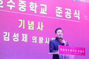 경기호연뉴스 민선기 기자 | 의왕시 백운밸리 지역에 신설된 백운호수중학교의 준공식이 24일 백운호수중학교 체육관에서 개최됐다. 의왕백운프로젝트금융투자(주)(의왕백운PFV(주)) 주최로 열린 이날 준공식에는 김성제 의왕시장, 임태희 경기도 교육감, 김학기 의왕시의회 의장과 도·시의원, 의왕백운피에프브이(주) 김양묵 대표이사, 의왕백운밸리에이엠시(주) 이성훈 대표이사 등 주요 내빈과 지역주민 400여 명이 참석해 자리를 빛냈다. 이번 준공식은 학교 설립을 위해 힘써 온 관계자와 지역 주민들이 한 자리에 모여 그동안의 결실을 함께 나누고 축하하는 뜻깊은 행사로 마련됐다. 의왕시 백운밸리 일대는 주거단지 조성과 함께 인구가 지속적으로 증가하고 있는 지역으로, 그간 중학교 부재에 따른 학생들의 원거리 통학 문제가 꾸준히 제기돼 왔다. 이에, 시는 ‘중학교 신설’이라는 지역 숙원사업 해결을 위해 다각적인 방안을 검토해 왔으며, 2023년 11월 의왕시·군포의왕교육지원청·의왕백운피에프브이(주) 간 3자 업무협약을 체결함으로써 학교 설립이 본격 추진됐다. 협약을 통해 시에서는 백운호수 초등학교 인접