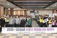 경기호연뉴스 민선기 기자 | 성남시는 폭설에 대응하기 위해 수정, 중원, 분당 등 구별로 시민들이 참여하는 제설봉사단을 구성해 운영하고 있다고 18일 밝혔다. 이를 위해 수정구는 지난 12월 16일 오후 2시 구청 1층 대회의실에서 수정경찰서와 합동 대책회의를 하고, 제설봉사단 발대식을 개최했다. 수정구는 경찰과의 합동 대책회의 자리에서 지난 12월 4일 단시간에 집중된 폭설 당시의 현장 대응체계를 점검하고, 도로 교통혼잡과 안전사고 발생을 최소화하기 위한 기관 간 협력 방안과 대응 매뉴얼을 논의했다. 이어진 수정구 제설봉사단 발대식엔 전체 단원 1122명 가운데 100명이 참석해 폭설로 인한 주민 불편을 최소화하고 적극적인 제설 자원봉사 활동에 참여할 것을 다짐했다. 제설봉사단은 강설 시 이면도로 경사로, 보도, 육교 등 제설 취약 지역에 우선 투입된다. 전경만 수정구청장은 “제설봉사단은 제설 작업 이외에도 ‘내 집 앞, 눈 치우기’를 주변에 적극적으로 홍보해 주민들의 관심과 협조를 이끌어 내는 역할도 중요하다”면서 “민‧관‧경의 유기적인 협력을 통해 주민들이 안전하게 겨울을 날 수