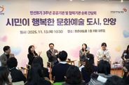 경기호연뉴스 민선기 기자 | 안양시는 13일 오전 10시 30분 평촌아트홀 1층 카페 아트림에서 ‘시민이 행복한 문화예술 도시, 안양’을 주제로 (재)안양문화예술재단과 민선 8기 3주년 공공·협력기관 순회 간담회를 개최했다. 이번 간담회는 민선8기 3주년을 맞아 안양시 문화예술 정책의 주요 성과를 공유하고, 현장 예술인과 시민의 의견을 직접 청취하기 위해 마련됐다. 행사에는 안양 지역 예술인과 문화단체 관계자, 시민 등 120여 명이 참석해 안양의 문화예술 비전과 발전 방향에 대해 활발한 소통의 시간을 가졌다. 간담회에서는 ▲시민이 주인공이 되는 ‘안양춤축제’ ▲생활문화로 피어나는 ‘마을축제 지원사업’ ▲지역·청년예술인 창작활동 지원 ▲안양박물관과 공공예술프로젝트(APAP) 등 시민이 함께 만들어가는 다양한 문화예술 사례가 소개됐다. 안양춤축제는 안양만의 축제가 아니라 관광형 축제로 거듭나고 있다. 지난 9월 3일간 열린 축제에는 총 14만2,000여명이 참여했는데, 이 중 40%가 타 시도민으로 추산된다. 춤축제 기간 열린 유스클럽챔피언십의 한 고등학생 참가자는 “대회 분위기가 생각보다 훨씬 뜨거웠고 행복했다