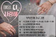 경기호연뉴스 민선기 기자 | 파주시는 파주시노인복지관 노인상담센터가 파주시에 거주하는 65세 이상 부부를 대상으로 부부 관계 증진을 위한 ‘매일 더 사랑해’프로그램을 운영한다고 밝혔다. 이번 프로그램은 가족관계의 중심이 자녀에서 부부로 이동하고, 부부간 정서적 유대와 상호 의존성이 깊어지는 변화 속에서 노년기 부부가 겪을 수 있는 갈등을 해소하기 위해 부부 소통, 친밀한 형성, 관계 향상 등을 돕는 커리큘럼을 구성하여 보다 행복한 노후를 지원하기 위해 마련됐다. ‘매일 더 사랑해’부부관계 증진 프로그램은 오는 4월 3일부터 5월 29일까지 매주 금요일 10시 30분부터 노인복지관 3층 희망샘에서 진행된다. 참가를 희망하는 부부는 오는 3월 31일까지 직접 방문하거나 전화로 신청할 수 있다. 파주시노인복지관 관계자는 “전문 상담사와 함께 앞으로도 어르신들의 정서적 안정과 행복한 노년 생활을 지원하기 위한 다양한 맞춤형 프로그램을 지속적으로 확대해 나가겠다”라고 밝혔다. 파주시 관계자는 “이번 ‘매일 더 사랑해’프로그램을 통해 어르신 부부들에게 새로운 소통의 기회를 제공하고, 공감과 이해를 바탕으로 더