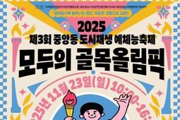 경기호연뉴스 민선기 기자 | 서귀포시는 서귀포시 중앙동 도시재생사업의 일환으로 〈2025 제3회 중앙동 도시재생 예체능축제 - 모두의 골목 올림픽〉을 11월 23일 10:00 ~ 16:00 중앙동 골목 및 거점시설에서 개최한다. 이번 축제는 중앙도 도시재생사업 각 예체능 프로그램 결과공유회를 비롯해 뉴트로 스포츠 및 윷놀이 대회, 골목 놀이, 새롭게 선보이는 클라이밍 체험, 팹랩시설 등 지역주민과 협력기관이 함께 참여해 중앙동 골목과 거점시설(3개소)*을 활용하여 축제에 참여하는 모두가 함께 즐길 수 있도록 기획했다. 이번 축제는 도시재생 관점에서 마을의 골목길과 거점시설을 문화콘텐츠로 재구성해 지역 공동체를 활성화하고, 각 사업에서 교육받은 시민과 협력기관이 주도적으로 기획 · 운영한다. 또한 '26년 조성 예정인 서귀포시 문화광장과 매일올레시장을 연계해 중앙동이 원도심 활성화의 허브 역할을 수행할 수 있도록 추진할 계획이다. 서귀포시 중앙동 도시재생사업은 이와 함께 '26년 거점공간 3개소(혼디모영 커뮤니티센터, 생활체육센터, 적정기술창작소)를 활용하여 지역주민과 여러 구성원들이 참여하는 '서귀중앙 마을관