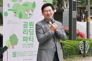 경기호연뉴스 민선기 기자 | ‘독서의 도시’ 용인특례시가 시민들이 공원에서 자유롭게 책을 읽고 소통하는 독서 행사를 마련해 눈길을 끈다. 용인특례시는 17일 오후 수지구 신정공원 독서광장에서 ‘제2회 공원 리딩(reading) 파티’를 개최했다. 이상일 시장과 시민 150여 명은 이날 ‘북크닉(Book+Picnic)’을 하며 뜻깊은 시간을 가졌다. 시는 4월 12일 도서관의 날을 맞아 도서관에 대한 국민의 이해와 관심을 높이고자 책을 매개로 한 시민 만남의 장을 마련했다. 올해 2회째를 맞은 공원 리딩 파티에서는 나만의 인생 책 읽기, 2026 올해의 책 필사 등 체험 부스가 마련돼 눈길을 끌었다. 시는 ‘북크닉’을 테마로 시민이 자유롭게 책을 읽을 수 있도록 그늘막 20개, 캠핑 의자 30개를 마련해 독서머뭄공간을 운영했다. 개인이 감명 깊게 읽은 책을 소개하는 ‘나의 인생 책 함께 읽기’ 부스는 수많은 시민이 몰려 인산인해를 이뤘다. 김중혁 작가의 북토크와 강예영·채비의 아임버스커 공연도 큰 호응을 얻었다. 이 시장은 ‘행복’을 주제로 한 강예영씨의 공연을