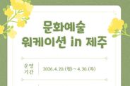 경기호연뉴스 민선기 기자 | 제주특별자치도와 한국광역문화재단연합회가 주최하고 제주문화예술재단(이사장 김석윤)이 주관하는 2026년 ‘문화예술 워케이션 in 제주’ 1차 프로그램이 오는 20일부터 4월 30일까지 운영된다. 일(work)과 휴가(vacation)를 병행하는 제주 워케이션은 2023년 시범 운영 이후 올해로 4년 차를 맞이했다. 이번 1차 운영에는 한광연 회원기관 종사자 20여 명이 제주 원도심을 거점으로 새로운 업무 환경을 경험한다. 참여자들은 원도심에 소재한 제주소통협력센터를 거점 오피스로, 재단이 운영하는 예술공간 이아와 산지천갤러리를 위성 오피스로 활용해 근무할 예정이다. 또한, ‘제주도립김창열미술관’ 전시 관람과 ‘환상숲곶자왈’ 체험 등 문화탐방 프로그램을 통해 제주의 문화와 자연을 경험하게 된다. 본 프로그램은 2023년 11월 제주도와 한광연이 체결한 업무협약에 기반하며, ▲문화예술 기반의 협력·교류를 위한 공동사업 발굴 ▲제주 지역문화 자원활용 상호 교류 등을 주요 내용으로 하고 있다. 재단 김석윤 이사장은 “올해로 4년 차를 맞이한 제주 워케이션은 문화예술