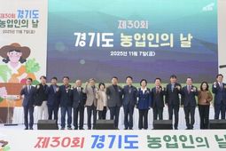 경기호연뉴스 민선기 기자 | 경기도는 7일 수원 국립농업박물관 광장에서 ‘제30회 경기도 농업인의 날 기념식’을 개최했다. 올해 기념식은 농경문화의 역사성 의미가 있는 국립농업박물관에서 열렸으며 고영인 경기도 경제부지사를 비롯해 정윤경 경기도의회 부의장, 방성환 농정해양위 위원장, 농업인단체와 유관기관 등 250여 명이 참석했다. 기념식에서는 경기도 농어업분야 최고의 상인 ‘경기도 농어민대상’ 14개 부문 수상자 16명과 농업발전 유공 수상자 3명, ‘2025년 시‧군 농정업무’ 우수 10개 시군에 표창을 수여했다. 경기도 농어민대상은 농어업분야에서 기술 개발과 고품질화로 농업 경쟁력 향상과 소득증대, 수출진흥 등을 위해 노력하거나 공헌한 농어민 또는 생산자단체에게 수여한다. 1994년부터 2024년까지 총 342명이 수상했다. 올해 수상자 16명은 ▲식량작물부문 여주시 이은규 ▲원예작물부문 광주시 한상우 ▲특용작물부문 연천군 심우일 ▲수산부문 가평군 김지용 ▲한우부문 이천시 공준식, 광주시 광주한우영농조합 ▲낙농․육우부문 이천시 박찬훈 ▲양돈부문 연천군 오명준 ▲가금 및 기타가축부문 김포시 이진유