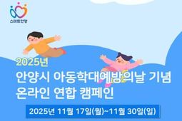 경기호연뉴스 민선기 기자 | 안양시는 아동학대 예방의 날(11. 19.)을 맞아 11월 17일부터 30일까지 관내 협력기관과 함께 ‘온라인 아동학대 예방 연합캠페인’을 진행한다. 17일 안양시에 따르면, 이번 캠페인은 ‘아동학대 예방의 정석(소통편)’ 홈페이지에서 아동학대 관련 문제를 풀어보는 참여형 캠페인이다. 문제는 ▲부부싸움에 노출된 아동의 속마음 맞추기 ▲아동의 핸드폰 사용 문제로 훈육하는 부모의 언어 해석하기 ▲숨은그림을 통해 학대피해아동 찾아보기 등으로 아동학대에 경각심을 일깨우고 올바르게 인식할 수 있도록 구성됐다. 앞서, 아동학대 예방을 위한 이번 캠페인 콘텐츠 발굴에 ▲안양동안경찰서 ▲안양만안경찰서 ▲안양시아동보호전문기관 ▲안양시학대피해아동쉼터 ▲안양과천교육지원청 ▲안양시가족센터 ▲경기남부아동일시보호소 ▲경기도아동돌봄안양센터 ▲청소년쉼터 2개소 등 총 10개 협력기관이 함께 참여했다. 지역사회와 시민들이 캠페인에 많은 관심을 가질 수 있도록 참여기관별로 이용자 등에게 적극 캠페인을 홍보할 예정이다. 최대호 안양시장은 “우리의 관심이 아이들의 행복을 지킬 수 있다”면서 “