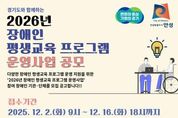 경기호연뉴스 민선기 기자 | 안성시는 성인 장애인의 평생학습 권리를 보장하고 평생교육 참여 기회를 확대하기 위하여 경기도와 안성시가 함께 지원하는 '2026년 장애인 평생교육 프로그램 운영' 공모사업을 추진한다. 이번 공모사업은 성인 장애인을 위한 맞춤형 평생교육 프로그램을 발굴‧지원하여 사회참여 기회를 넓히고, 누구나 차별 없이 배움의 기회를 누릴 수 있는 평생학습 환경을 조성하는 데 목적이 있다. 신청 대상은 안성시에 주소(등록)를 둔 장애인 평생교육 기관‧단체이며, 신청 기간은 12월 2일부터 16일까지이다. 모집 규모는 ▲평생교육법 제7진 분류를 기반으로 한 ‘장애인 평생교육 프로그램’ 1개소와 ▲'장애인복지법'에 따른 15개 장애 유형 분류를 기반으로 한 ‘장애유형별 평생교육 프로그램’ 2개소, 총 3개소이다. 선정된 프로그램은 2026년 2월부터 10월까지 운영될 예정이다. 공모사업에 대한 자세한 내용은 안성시청 누리집 및 안성배움e 누리집에 게시된 공고문을 통해 확인할 수 있으며, 신청 서류 또한 해당 누리집에서 내려받을 수 있다. 시 관계자는 “이번 사업을 통해 성인 장애인의 평생학습