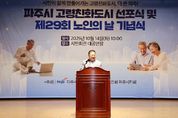 경기호연뉴스 민선기 기자 | 파주시는 지난 14일 파주시민회관 대공연장에서 ‘제29회 노인의 날 기념행사 및 세계보건기구(WHO) 인증 고령친화도시 선포식’을 성황리에 개최하고, 고령사회에 대응하는 파주시 복지정책 방향과 세대 간 공감의 문화를 확산하기 위한 뜻깊은 자리를 마련했다. 이번 행사는 김경일 파주시장을 비롯해 박대성 파주시의회 의장, 경기도 및 파주시의원, 노인 관련 유관기관장 등 400여 명이 참석해 시민 모두가 행복한 고령친화도시를 만들어가겠다는 의지를 다졌다. 이날 행사에서는 노인복지 유공자 54명에 대한 표창 수여와 함께 고령친화도시 선포, 축하공연 등이 이어져 풍성한 볼거리를 선사했다. 김경일 파주시장은 “파주시는 세계보건기구(WHO)로부터 고령친화도시로 공식 인증받은 것을 계기로, 어르신이 존중받고 시민 모두가 행복한 도시를 만들겠다”라며 “앞으로도 노인복지 증진과 세대 통합을 위한 다양한 정책 실현을 통해 파주시민 모두가 ‘파주에 살기를 참 잘했다’라고 말할 수 있도록 최선을 다하겠다”라고 밝혔다. 향후 파주시는 관내 노인 관련 유관단체와 적극 협력하여 어르신의 목소리에 귀