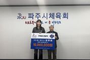 경기호연뉴스 민선기 기자 | 파주가 낳은 배구 인기인(스타)이자 아이비케이(IBK)기업은행 알토스 소속 이주아 선수가 고향 후배들을 위해 1천만 원을 기부하며 남다른 고향 사랑을 전했다. 파주시체육회는 지난 23일 체육회 회의실에서 이주아 선수와 부모, 파주시배구협회 관계자(박희수 회장, 황우연 부회장, 전찬혁 사무국장) 등이 참석한 가운데 기부금 전달식을 개최했다. 이번에 전달된 기부금은 파주 지역 생활체육 활성화를 비롯해 유소년 및 학생 선수 육성, 체육 기반 시설 개선 등 파주시 체육 발전을 위한 다양한 사업에 사용될 예정이다. 이주아 선수는 “고향 파주에서 많은 응원과 도움을 받으며 운동을 시작했고, 덕분에 지금의 자리까지 올 수 있었다”라며, “지역 체육 발전과 후배 선수들에게 작게나마 힘이 되고자 기부를 결심하게 됐다”라고 소감을 밝혔다. 이어 “앞으로도 파주 체육이 더욱 활성화돼 꿈을 키우는 후배들이 더 나은 환경에서 운동할 수 있기를 바란다”라고 덧붙였다. 김종훈 파주시체육회장은 “파주 출신 국가대표 선수로 훌륭하게 성장한 이주아 선수가 고향을 잊지 않고 나눔을 실천해 준 데 대해 깊