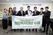 경기호연뉴스 민선기 기자 | 안산시는 지난 19일 경기도 ‘제26회 사회복지의 날’을 기념해 ‘희망복지대상’ 감사패를 전달받았다고 22일 밝혔다. 지난해 제정된 희망복지대상은 선도적 사회복지 발전을 위한 시정 정책을 실현하고 사회복지종사자의 지위 향상 및 처우 개선을 위해 다양한 지원책을 추진한 지방자치단체장에게 수여되는 상이다. 올해는 안산시와 수원시가 각각 수상의 영예를 안은 가운데, 지난 19일 안산시청사에서 열린 전달식에서는 강기태 경기도사회복지협의회 회장이 직접 방문해 이민근 시장에게 감사패를 전달했다. 안산시는 사회복지종사자 처우 개선을 위해 ▲장기근속자 감사패 수여 ▲안산형 복지포인트 지원 ▲청년 종사자 힐링워크숍 개최 ▲건강검진비 지원 추진(2026년 예정) 등 체감할 수 있는 다양한 정책을 추진해 온 점에서 높은 평가를 받았다. 시는 앞으로도 민·관 협력을 강화해 복지 현장의 목소리가 반영되는 정책을 펼쳐나감으로써 지속 가능한 복지 도시 실현에 힘쓴다는 방침이다. 이민근 안산시장은 “이번 수상은 현장에서 헌신하는 사회복지 종사자들과 함께 나누어야 할 성과”라며 “앞으로도