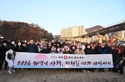 경기호연뉴스 민선기 기자 | 의정부시의회는 지난 1일 병오년 새해를 맞아 지역 주민들과 함께 걸으며 희망찬 2026년을 시작할 수 있도록 ‘해맞이 산책, 하천길 따라 새빛정원까지’ 신년 해맞이 행사에 참석했다. 이번 행사는 ▲호원 생활체조광장에서 출발해 ▲신의교~신곡교 중간지점 벽천분수 ▲동오역 생활체조광장 ▲경기도청 북부청사역 인근 벽천분수를 거쳐 ▲신곡새빛정원까지 이어지는 릴레이 산책 코스로 진행됐다. 해맞이 행사에는 시민들과 함께했으며, 15개 동 통장협의회가 행사 준비와 운영에 참여해 중랑천, 부용천 산책로를 걸으며 새해에도 시민들과의 공동체 의식을 함양하고자 마련됐다. 김연균 의장을 비롯한 권안나 부의장과 의정부시장, 의정부시통장협의회 등이 참석했다. 행사에 참석한 의원들은 “희망과 도약을 상징하는 붉은 말의 해를 맞아 시민들과 첫 해맞이를 함께하게 되어 더없이 기쁘다며” “올 한 해 더욱 시민들의 목소리에 귀 기울이고 함께 공감·소통하며, 의정부시의 발전을 이끄는 의정부시의회가 되도록 노력하겠다”고 전했다.