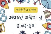 경기호연뉴스 민선기 기자 | 경북의 대표적 과학문화시설인 예천천문우주센터가 오는 18일 오후 7시부터 9시까지 ‘2026년 과학의 달 공개관측회’를 개최한다. 매년 4월은 과학기술의 중요성을 되새기고 국민의 과학적 관심을 높이기 위해 지정된 ‘과학의 달’이며, 특히 4월 21일 ‘과학의 날’은 과학기술 진흥과 발전을 기념하는 날이다. 이번 2026년 과학의 달 공개관측회는 이러한 의미를 바탕으로 누구나 쉽고 흥미롭게 천문을 접할 수 있도록 기획됐다. 행사는 4월 18일 토요일 오후 7시 플라네타리움(돔 영상실) 우주 영상 관람을 시작으로 오후 8시부터는 천문대 관측실에서 공개관측회가 진행되며, 대형 반사망원경 등 다양한 장비를 활용해 목성과 금성 등 4월의 밤하늘을 직접 관측할 수 있다. 이번 공개관측회는 선착순 25명을 네이버 예약을 통해 모집하며, 천체관측은 기상 상황에 따라 제한되거나 다른 프로그램으로 변경될 수 있다. 예천천문우주센터 관계자는 “과학의 달을 맞아 준비한 이번 행사가 많은 분들께 과학을 보다 가깝게 느끼는 계기가 되길 바란다”며 “앞으로도 다양한 체험형 프로그램을