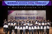 경기호연뉴스 민선기 기자 | 용인특례시는 30일 시청 에이스홀에서 ‘제72회 경기도체육대회 2026 광주’에 참가하는 선수단 출정식을 개최했다. 제72회 경기도체육대회는 4월 16일부터 18일까지 3일간 광주시 일원에서 열리며, 용인특례시는 육상, 축구, 태권도 등 26개 종목에 선수 312명이 출전한다. 출정식에는 이상일 시장을 비롯해 체육회 임원과 종목단체장, 선수단 등 약 300명이 참석했다. 이상일 시장은 격려사를 통해 “그동안 대회를 위해 열심히 준비해 온 선수단 여러분들 정말 자랑스럽다”며 “이번 대회에서 갈고닦은 실력을 마음껏 발휘해 원하는 성과 거두시길 바라고, 모두가 한 단계 더 성장하는 계기가 되길 바란다”고 말했다. 이 시장은 “선수들이 더 좋은 환경에서 훈련하고 기량을 펼칠 수 있도록 지원을 확대하기 위해 노력하고 있다”며 “앞으로도 여러분과 함께 힘과 지혜를 모아 오늘보다 더 나은 내일을 만들어가겠다”고 했다. 이 시장은 출정식 이후 집무실에서 직장운동경기부 감독과 종목단체 회장단을 대상으로 간담회를 열어 선수단을 격려하고, 현장의 애로사항과 건의사항을 청취했다.