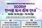 경기호연뉴스 민선기 기자 | 수원시청소년청년재단 수원청소년문화센터 한아름도서관은 2025. 독서의 달을 기념하여‘한아름독서축제’를 10월 10일부터 10월 19일까지 운영한다. 이번 독서축제는 △스피치 강사와 함께하는 북토크 강연 △동화구연 공연 △재미 두배 1+1 체험활동 △원화 명화 전시 △도서관 이용자 대출 이벤트 등 청소년과 지역주민이 함께 공감하며 즐길 수 있는 다양한 프로그램으로 구성했다. △스피치 강사와 함께하는 북토크 강연 △동화구연 공연은 사전접수를 통해 참여가 가능하며, 재미 두배 1+1 체험 활동은 별도 접수 없이 현장에서 선착순 참여로 가능하다. 참가비는 전액 무료이다. 사전접수는 10월 1일 수요일부터 선착순으로 모집하며, 신청 방법은 수원시청소년청년재단 홈페이지‘한아름독서축제’안내문의 QR코드로 접속하여 신청할 수 있다. 한아름도서관은 이번‘한아름독서축제’를 통해 청소년과 지역주민의 독서 문화를 장려하고 도서관 활성화를 도모하고자 한다.