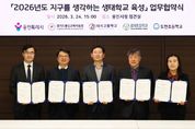 경기호연뉴스 민선기 기자 | 용인특례시는 24일 시청 접견실에서 용인교육지원청을 비롯해 3개 학교와 ‘지구를 생각하는 생태학교 육성사업’을 위한 협약을 맺었다. 이날 협약식에는 조영민 교육장과 올해 생태학교로 선정된 대지고 유동철 교장, 효자초 정계환 교장, 도현초 연승희 교장, 담당 교사들이 참석했다. 이들 기관은 협약에 따라 ▲학교별 맞춤형 생태교육 운영 지원 ▲교과·교육과정과 연계한 생태교육 프로그램 개발·자문 ▲생태학교 육성사업 성과평가 등을 위해 협력하기로 했다. 올해 4년 차를 맞이한 ‘지구를 생각하는 생태학교’ 사업은 전국 지자체 중 최초로 환경교육 전문 인력을 학교 현장에 배치, 이론 교육을 넘어 실천 중심의 생태전환교육을 하는 용인시의 핵심 환경교육 사업이다. 시는 2023년부터 해마다 공모를 통해 지역 내 학교를 선정해 왔다. 올해 선정된 3개 학교를 포함해 총 12개교가 생태학교 사업에 참여하고 있다. 올해 기준 용인 지역은 초·중·고 343학급, 학생 9149명이 생태교육에 참여하면서 현장 중심의 체계적인 환경교육으로 높은 평가를 받고 있다. 시는 축적