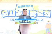 경기호연뉴스 민선기 기자 | 파주시는 운정건강공원에서 지난 26일부터 3일간 ‘젊은 농부와 도시가 만나다’를 주제로 열린 ‘제4회 파주시도시농업박람회’를 성황리에 마치고, 도시민과 농촌이 하나 되는 자리를 통해 파주시 도시농업의 미래 가능성을 제시했다고 밝혔다. 전시공간과 체험공간을 운영, 도심에서는 보기 어려운 목화, 대추나무, 레몬, 까치콩, 달가지 등 여러 가지 농작물 전시와 도시농업 작품 전시를 통해 도시민이 농업에 쉽게 접근하고 이해할 수 있도록 꾸몄다. 삼색경단꼬치·바람떡 만들기, 다육정원·관엽정원 만들기, 전통 다식 등 다양한 체험 프로그램과 거리공연(버스킹), 동극, 비눗방울 공연 등의 가족단위 공연 프로그램은 방문객들의 뜨거운 반응을 이끌어 냈다. 또한 시에서 배출한 도시농업관리사들의 숨은 기량을 뽐내는 ‘제2회 도시농업관리사 작품 전시전’과 관내 4개 중고등학교 학생들이 직접 참여한 ‘청소년 도시농업 경연대회’, 파주시 어린이집에서 직접 재배한 ‘벼 화분 전시’는 관람객들의 눈을 즐겁게 했다. 박람회는 잔디광장 텃밭 정원에 심었던 여러 가지 쌈 채소와 도시농업관리사 전시 작품들을 나누고 기부하