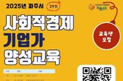 경기호연뉴스 민선기 기자 | 파주시는 사회적가치 실현을 위한 사회적경제 생태계 확산을 목표로 ‘2025년 하반기 사회적경제 기업가 양성 교육’을 운영한다. 교육은 10월 14일부터 11월 27일까지 매주 화·목 19~21시에 진행되며, 금촌어울림센터 1층에서 총 14강으로 진행된다. 대상은 관내 사회적경제 창업 희망자 및 관심 시민이며, 정원은 선착순 30명이다. 교육과정은 사회적경제의 철학과 기업가정신을 시작으로, ▲협동조합·마을기업·사회적기업의 제도 이해 ▲소셜 비전 수립 ▲지역자원 발굴·활용 ▲홍보·마케팅 ▲조직 운영 ▲사회적가치 체계 구축까지 창업 전 과정을 단계적으로 다룬다. 특히 생성형 인공지능(AI)을 활용한 사업계획서 작성 실습으로 변화하는 환경에 바로 적용할 수 있는 역량을 기를 수 있도록 구성했다. 특화 프로그램으로 업종별 자문상담을 마련해 유통·제조, 돌봄·사회서비스, 교육·관광·체험, 환경·자원순환 분야의 현직 사회적경제 기업 대표들이 사례 중심의 밀착 상담을 제공한다. 또한 창업 단계부터 사회적기업 인증까지의 과정을 성공적으로 거친 선배 기업가와의 만남도 진행되어 실제 경험에