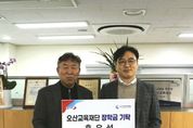 경기호연뉴스 민선기 기자 | 오산교육재단은 지난 15일 ㈜드림앤트 홍우석 대표로부터 오산시 지역 인재 육성을 위한 장학금 600만 원을 기탁받았다고 밝혔다. 홍우석 대표는 오산시 관내 고등학교를 졸업한 지역 출신 기업가로, 학생들의 학업 지원과 교육환경 개선에 보탬이 되고자 지난 2021년 12월 첫 기탁을 시작으로 매월 정기적인 장학금 후원을 이어오고 있다. 현재까지 누적 기탁액은 총 2,500만 원에 달하며, 2026년에도 추가로 600만 원을 기탁할 계획이다. 홍 대표는 “제가 성장한 오산시에 교육 지원을 통해 지역 인재 양성에 기여할 수 있어 뜻깊게 생각한다”며 “이번 장학금이 학생들이 자신의 꿈을 키우고 미래를 준비하는 데 작은 디딤돌이 되길 바란다”고 전했다. 이영빈 오산교육재단 상임이사는 “자신이 성장한 지역사회에 기부로 환원하는 모습은 매우 의미 있고 좋은 본보기”라며 “기탁해 주신 장학금은 학생들이 꿈을 키우고 미래를 설계하는 데 소중히 활용하겠다”고 말했다.