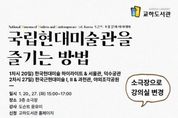 경기호연뉴스 민선기 기자 | 파주시 교하도서관은 오는 20일과 27일, 15시부터 17시까지 교하도서관 3층 소극장에서 전문 안내원(도슨트) 초청 강연 프로그램 ‘국립현대미술관을 즐기는 방법’을 운영한다. 이번 프로그램은 국립현대미술관 윤유미 전문 안내원(도슨트)을 초청해, 국립현대미술관 서울관·덕수궁관·과천관의 상설전시를 중심으로 한국 현대·근현대 미술의 흐름을 이해하고 미술관을 보다 깊이 있게 감상할 수 있는 방법을 안내하기 위해 마련됐다. 1차시 강연은 1월 20일에 진행되며, 국립현대미술관 서울관과 덕수궁관의 주요 전시를 중심으로 ‘한국현대미술의 하이라이트’전시를 다룬다. 2차시 강연은 1월 27일에 열리며, 과천관 상설전시인 ‘한국근현대미술 I·II’와 ‘야외조각공원’을 소개할 예정이다. 강연은 청소년부터 성인까지 총 30명을 대상으로 계획됐으나, 신청자가 많아 더 많은 시민이 참여할 수 있도록 장소를 3층 소극장으로 변경해 운영한다. 이재면 교하도서관장은 “이번 강연을 통해 시민들이 현대미술을 보다 친근하게 접하고, 미술관 관람의 즐거움이 한층 넓어지는 계기가 되길 바란다”라고 밝혔다.
