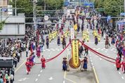 경기호연뉴스 민선기 기자 | ‘K-축제’로 자리매김한 정조대왕 능행차 공동재현이 28일 수원에서 열렸다. 오전에 세차게 비가 내렸지만 수원종합운동장에서 본격적인 행렬이 시작된 오후에는 비가 그쳐 수많은 관람객이 정조대왕 능행차 재현을 함께 즐겼다. 정조대왕 능행차 재현 행렬(수원 구간)은 오전 노송지대(1구간)에서 시작됐다. 오후 3시 30분 수원종합운동장에서 행렬이 출발했고, 종합운동장에서 행궁광장에 이르는 길 양쪽은 관람객들로 가득했다. 시민 2000여 명과 말 70여 필이 행렬에 참여했다. 행궁광장에서 정조대왕이 입궁하는 퍼포먼스로 능행차 공동재현은 마무리됐다. 행궁광장에서는 국제자매도시 공연단의 축하공연, 정조대왕 행차를 환영하는 축하행렬인 수원화성 퍼레이드, 정조대왕 능행차 재현·입궁 퍼포먼스, KBS 국악관현악단과 국악인 김영임, 유태평양의 협연 콘서트가 이어졌다. 이재준 수원시장, 이재식 수원시의회 의장, 수원 지역 국회의원들도 행렬에 참여하며 시민들과 함께했다. 행궁광장에서 시민들을 만난 이재준 시장은 “수많은 시민이 함께 즐긴 정조대왕 능행차 공동재현은 정조대왕이 꿈꿨던