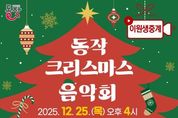 경기호연뉴스 민선기 기자 | 동작구는 오는 25일 오후 4시 구청 신청사에서 ‘동작 크리스마스 음악회’를 개최한다고 밝혔다. 동작문화원이 주최하는 이번 행사는 성탄절을 맞아, 소외된 이웃 없이 구민 모두가 따뜻한 연말을 보낼 수 있도록 기획됐다. 특히, 본 공연은 4층 대강당과 소회의실을 모두 활용한 이원생중계 방식으로 한층 풍성한 무대를 선보인다. 성탄 특송(일신교회 호산나 성가대)을 시작으로 ▲대중음악(2025년 노들가요제 대상·금상 수상자) ▲국악(여우락예술단) ▲성악(소프라노·테너·바리톤) ▲비보이 댄스(에프터글로우) ▲관현악 앙상블 ▲합창(동작구립소년소녀합창단) ▲전자바이올린(유세미) 등 다양한 장르의 문화공연이 펼쳐진다. 이어 초청 가수 ‘혜은이’가 무대에 올라 구민들에게 특별한 선물 같은 시간을 선사할 예정이다. 음악회는 취약계층 및 구민 600명을 대상으로 전석 무료로 운영된다. 참석을 원하는 주민은 오는 12일 오후 5시까지 구청 누리집 통합예약 시스템을 통해 신청 가능하며, 1인 4매까지 예약할 수 있다. 이후 추첨으로 관람이 확정되며, 안내
