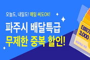 경기호연뉴스 민선기 기자 | 파주시는 오는 9월 15일부터 공공배달앱 ‘배달특급’ 이용 활성화를 위해 대규모 할인권 제공 행사를 진행한다. 이번 행사는 파주시가 배달특급과 협력해 물가 상승과 경기 침체로 어려움을 겪는 시민과 소상공인 모두에게 실질적인 혜택을 제공하기 위해 마련됐다. 현재 파주시에 있는 3천여 개 배달특급 가맹점에서 1만 8천 원 이상 주문 시 1회당 3,000원 할인권을 예산 소진 시까지 횟수 제한 없이 사용할 수 있다. 또 배달특급 내 업체가 지역화폐 가맹점인 경우 할인권 혜택과 더불어 파주페이 10% 추가 특전(인센티브) 혜택까지 동시에 받을 수 있다. ‘배달특급’은 민간 배달 중개망(플랫폼) 대비 낮은 중개수수료와 다양한 혜택을 제공해 지역 소상공인의 경쟁력을 높이고 있다. 파주시는 이번 무제한 할인권 제공을 계기로 시민들의 사용률을 높이고 신규 가맹점 확대를 통해 공공배달 앱이 지역경제 활성화의 견인차 역할을 하도록 할 계획이다. 김경일 파주시장은 “이번 무제한 할인권 제공이 소비자에게는 실질적인 부담 경감, 소상공인에게는 매출 확대라는 두 가지 효과를 가져올 것”이라며 “