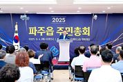경기호연뉴스 민선기 기자 | 파주읍 주민자치회는 지난 4일 파주읍 행정복지센터에서 ‘2025년 제5회 파주읍 주민총회’를 성황리에 개최했다. 이번 총회에는 김경일 파주시장을 비롯해 지역구 시의원, 지역 단체장, 주민 등 150여 명이 참석했으며, 주민자치센터 프로그램 발표회 식전공연을 시작으로 파주읍 주민자치회 활동 보고, 자치계획형 사업 설명 및 의결 등의 순으로 진행됐다. 앞서 파주읍 주민자치회는 2026년 자치계획형 사업 선정을 위해 지난 8월 13일부터 27일까지 사전투표를 실시했다. 파주읍 행정복지센터 1층 투표소 외에도 찾아가는 투표소, 온라인 투표 등을 함께 운영해 주민들의 많은 주민들의 투표 참여를 유도했으며, 그 결과 총 564명의 주민이 투표에 참여했다. 투표 결과 과반수 찬성을 얻어 확정된 2026년 자치계획형 사업은 ▲찾아가는 우리 동네 골목길 ▲근현대 아카이브 사진 촬영 및 편집 교육 ▲깨끗한 파주읍 하천 정화 캠페인 ▲갈곡천 산책로 정비사업 ▲스마트 레벨업 교육 및 참여 활동 ▲다함께 참여하는 다문화 축제 ▲파주읍 어르신들을 위한 봄날 이불 빨래 ▲통일교육도시 파주를 말하다 ▲갈곡천 코