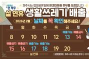 경기호연뉴스 민선기 기자 | 파주시는 2026년 설 연휴 기간 동안 환경미화원의 휴무를 보장하고 안정적인 생활 쓰레기 수거체계를 운영하기 위해 일부 기간 생활 쓰레기 수거를 중단한다. 시에 따르면 오는 2월 14일부터 17일까지는 생활폐기물 배출이 금지되며, 2월 18일부터 배출이 가능하다. 배출이 허용되는 날에도 배출 시간은 18시(일몰) 이후로 제한되며, 낮 시간대 배출은 금지된다. 다만 운정신도시 내 자동집하시설이 설치된 지역은 연휴 중에도 일반·음식물 쓰레기 배출이 가능하다. 파주시는 설 연휴를 대비해 시민 생활과 밀접한 도시환경 개선을 위해 읍면동별로 시민 참여형 환경 정비 활동인 ‘우리동네 새단장’과 연계한 대청소를 추진해 마을 단위 환경 정비가 확산될 수 있도록 통장단·지역단체 등과 함께 시민 참여를 독려해 나갈 계획이다. 또한 주요 취약지역을 중심으로 쓰레기 무단투기 집중 단속을 병행해, 연휴 대비 환경 정비를 강화해 시민과 방문객이 체감할 수 있는 깨끗한 도시 이미지를 조성해 나갈 방침이다. 아울러 시민 불편을 최소화하기 위해 연휴 기간 중 쓰레기 관리 상황반을 운영하고, 청소 대행업체와의 협조