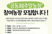 경기호연뉴스 민선기 기자 | 시흥시는 도시민의 농업 체험 기회를 확대하고 지역공동체 활성화를 도모하기 위해 ‘2026년 공동체 주말농장 조성 및 운영 지원 사업’을 운영하는 가운데, 민간 주도 공동체 주말농장 5곳을 오는 2월 2일부터 4일까지 모집한다. 이번 사업은 주민들이 함께 농작물을 재배하고 교류할 수 있는 공동체가 기반의 주말농장 운영을 지원하는 시범 사업으로, 시민들의 건전한 여가문화 조성은 물론 이웃 간 소통과 협력을 위해 추진된다. 선정된 공동체에는 전문 도시농업관리사가 직접 현장을 방문해 텃밭 관리 요령과 친환경 병해충 방제 방법을 교육하고, 공동체 활동 프로그램 운영을 지원하는 등 도시농업 공동체 활성화 중심의 맞춤형 교육프로그램이 제공된다. 신청 대상은 시흥시 도시농업공동체에 등록된 공동체가 운영 중인 주말농장이다. 주민을 대상으로 공개 분양해 텃밭 가꾸기 활동을 하는 단체여야 하며, 농장 규모는 최소 1,500㎡ 이상, 운영 구좌 50구획 이상을 갖춰야 한다. 구획당 면적은 30㎡(약 10평) 내외 기준이다. 또한 무비닐, 무화학농약, 무화학비료 등 이른바 ‘3무 농법’ 실천 노력이 확인되