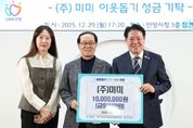 경기호연뉴스 민선기 기자 | 안양시는 지난 29일 ㈜미미로부터 이웃돕기 성금 1천만원을 기탁받았다고 30일 밝혔다. 이날 시청 접견실에서 열린 성금 전달식에는 최대호 안양시장과 조인주 ㈜미미 회장, 조예서 전무 등이 참석했다. ㈜미미는 만안구 덕천로에 소재한 기업으로 용역·청소·경비·주택업·건물종합관리 등 다양한 분야에서 사업을 운영하고 있으며, 지역사회 나눔과 사회공헌 활동에도 꾸준히 동참하고 있다. 이번에 기탁된 성금은 안양시 이웃돕기 성금으로 사용되며, 저소득층 건강보험료 지원과 취약계층 물품 지원 등 관내 어려운 이웃을 돕는 데 활용될 예정이다. 조인주 회장은 “지역사회로부터 받은 사랑을 다시 이웃과 나누고자 성금을 기탁하게 됐다”며 “작은 정성이지만 어려운 분들께 도움이 되기를 바란다”고 전했다. 최대호 안양시장은 “연말을 맞아 따뜻한 나눔을 실천해 주셔서 감사드린다”면서 “성금은 저소득층과 취약계층 등 도움이 절실한 이웃들에게 투명하고 공정하게 전달하겠다”고 말했다.