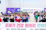 경기호연뉴스 민선기 기자 | 광주시보건소는 16일 65세 이상 어르신을 대상으로 운영 중인 ‘또바기 건강동아리 한마당 축제’를 성황리에 마무리했다. 이번 축제는 방세환 시장을 비롯해 또바기 건강동아리 어르신 100여 명이 참석한 가운데 한 해 동안 건강동아리 활동에 참여해 온 어르신들의 노력을 되돌아보고 성과를 공유하기 위해 마련됐다. 행사장은 어르신들의 뜨거운 호응 속에 활기차고 따뜻한 분위기로 가득 찼다. 행사는 ▲1부 전통 타악 식전 공연(꽹과리·소고)과 미술작품 전시 관람 ▲2부 2025년 건강동아리 활동 발표 및 팀별 놀이마당 등 어르신들의 적극적인 참여와 소통을 중심으로 구성됐다. 특히, 꾸준히 걷기 활동과 운동 프로그램에 참여해 온 어르신들의 1년간 활동 영상을 함께 시청하며 건강을 위해 함께 땀 흘린 시간을 추억하는 뜻깊은 시간이 이어졌다. 이날 함께 진행된 또바기 건강동아리 미술반 작품 전시는 어르신들의 예술적 역량을 시민들과 공유하는 자리로 마련돼 참여 어르신들에게 감동과 성취감을 동시에 선사했다. 미술반 작품 전시는 15일부터 31일까지 평생학습관 2층 전시실에서 진행되며 광주시